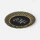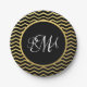 Prato De Papel Padrão Chevron Preto e Dourado Triplo Monograma