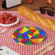 Este design neon colorido apresenta múltiplos polígonos em um padrão brilhante e divertido.