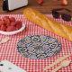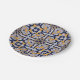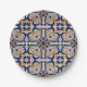 Design de padrão-azulejo português com decoração floral azul, branca e amarela