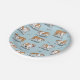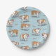 Um padrão fofo de Buldogue Inglês. Este desenho fofo de Buldogue Britânico está em um fundo azul com ossos de cachorro. Os cães-touro têm expressões bonitinhas em seus rostos distintos e enrugados. Um padrão para quem ama cachorros.