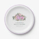 Pratos de Papel Personalizados para Chuva de Noiva com Aquarela Floral Rosa Lavanda