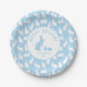 Prato De Papel Padrão de Coelho Azul Claro e Branco Feliz Páscoa