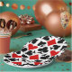 Conjunto de quatro ícones de traje de cartas vermelho, preto e branco, padrão colorido. Estas placas de papel de casino são perfeitas para quem gosta de jogos de cartas como pôquer, ponte ou blackjack. Um presente divertido para amigos, colegas de trabalho ou família no Natal ou Aniversários, e quaisquer ocasiões de doação!