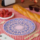 Faça a sua mesa brilhar com esta placa de papel geométrica, com um arranjo circular mesmerizante de diamantes que fazem uma mandala espiritual em tons de azul real e azul claro. Colocado sobre um fundo cor-de-rosa macio e pastel, o intricado design é enriquecido com tons roreais e violetas profundos, criando uma mistura perfeita de luxo e elegância moderna. Perfeito por adicionar um toque de elegância aos aniversários, casamentos, chás de panela ou qualquer ocasião especial.