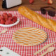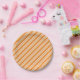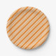 Placas de papel com listras em tons de laranja e branco para os feriados. Ideia de decoração para adultos e crianças.