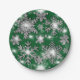 Prato De Papel Padrão de floco de neve festivo verde-prateado