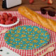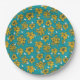 Prato De Papel Padrão de Flores de Teal Amarelo
