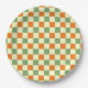 Prato De Papel Padrão de Gingham - Laranja Verde Marrom