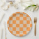 Prato De Papel Padrão de Gingham Verificado por Laranja