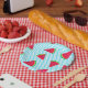 Prato De Papel Padrão De Linhas Azuis De Melancia Chic