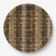 Prato de papel com padrão de listra geométrica quente, apresentando diamantes inspirados em tribos, zigue-zagues e faixas verticais texturizadas em tons terrosos de marrom, terracota, bege, bege claro e carvão. Um design boho aconchegante ideal para amantes de decoração do sudoeste, fãs de estilo rústico e qualquer pessoa atraída por estéticas terrosas e artesanais.