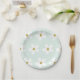 Prato De Papel Padrão de Margarida Simples Verde Branco Dourado