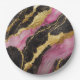 Pratos de papel com padrão de mármore preto rosa com ouro