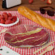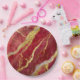 Prato De Papel Padrão de mármore vermelho com Dourado
