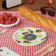 Prato De Papel Padrão de Monograma de Frutas Exóticas Comestíveis