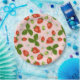 Placas de papel cor-de-fundo cor-de-rosa com padrão de morango