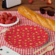 Prato De Papel Padrão de Natal em Dourado e Vermelho