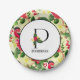Prato De Papel Padrão de Natal Monograma Inicial P Personalizado