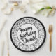 Esta design sobre a colina tem um padrão aleatório de números preto e branco com um número de referência preto 90 repetido em tamanhos e ângulos variados. Há um círculo branco no centro para seu texto e anéis preto-e-branco ao redor da borda. Uma ideia legal para sua festa de aniversário 90 ou para todas as ocasiões, pessoal ou profissional, onde você apresenta o número 90. Adicione facilmente seu texto ao centro usando o modelo fornecido.