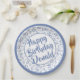Esta design sobre a colina tem um padrão aleatório de números azuis e brancos com um marco azul 90 repetido em tamanhos e ângulos variados. Há um círculo branco no centro para seu texto e anéis azuis e brancos ao redor da borda. Uma ideia legal para sua festa de aniversário 90 ou para todas as ocasiões, pessoal ou profissional, onde você apresenta o número 90. Adicione facilmente seu texto ao centro usando o modelo fornecido.