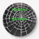 Pratos de papel com padrão de teia de aranha assustadores, com a sua escolha de texto personalizado, ou remova as palavras completamente.