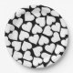 Prato De Papel Padrão do Coração Branco e Preto Retroativo