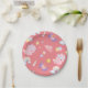 Prato De Papel Padrão do pastel arco-íris de dinossauro rosa-doce