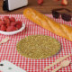 Vírus de diversão, pratos de papel brilhante dourado - o texto é personalizável e o design é transferível