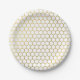 Prato De Papel Padrão Geométrico do Hexágono Branco e Dourado
