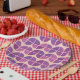 Prato De Papel Padrão Geométrico Púrpura, Rosa, do meio século