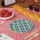 Prato De Papel Padrão Ikat - Verde, Azul Indigo e Branco