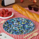 Linda escuridão contemporânea e azul brilhante, turquesa aqua, amarelo ensolarado e tinta verde de aquarela turfa espirram padrões de derrames de pincel.