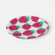 Prato De Papel Padrão Mínimo de Morango Bonito em Vermelho e Verd