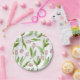 O design do produto apresenta um padrão de flores de tulipas rosa. Esta ilustração botânica torna pratos de papel modernos, elegantes e únicos para o aniversário dela, Páscoa, Dia das Mães ou festa de casamento.
