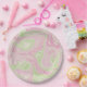 Prato De Papel Padrão Rosa Verde Suave Líquido