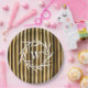 Prato De Papel Padrão Rústico de Linhas Verticais do Monograma de