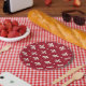 Prato De Papel Padrão Silver Fleur De Lis em fundo vermelho