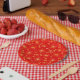 Prato De Papel Padrão Sputnik do meio século, Vermelho Profundo