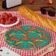Esta obra de arte irradia energia tropical, apresentando folhas de monstera ousadas em tons verdes ricos e acentos dourados sobre um fundo vermelho vibrante. As formas gráficas, veias simplificadas e repetição rítmica criam um padrão contínuo que parece moderno e exuberante. Sua paleta de alto contraste e composição animada tornam-no ideal para tecidos e decoração de destaque — irradiando calor, vivacidade e um sentido de celebração tropical.