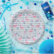 Placas de papel com um padrão com uma vibração de verão divertida. flamingos e abacaxis cor-de-rosa, colocados sobre um padrão listrado azul claro com folhas e corações ao redor.