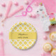 Prato De Papel Padrões de Quatrefoil Amarelo-limão e Branco