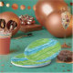 Nada diz diversão tropical como folhas de palma. E o esquema de cor azul e verde é tão feliz!