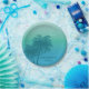 Prato De Papel Palmeiras Tropicais em Azul Água Aniversário Feliz
