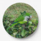 Papagaio verde selvagem no mato verde num parque na Espanha. Também conhecido como periquito Monge ou papagaio Quaker