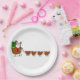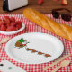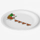 Um desenho do Pai Natal sentado no seu cheio de trenó de presentes com galinhas puxando o trenó.