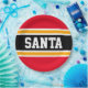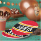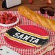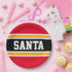 Este design de Natal esportivo apresenta PAPAIS NOEIS atléticos texto dentro a faixa preta com pinstripes brancas e amarelas contra listras externas brilhantes e vermelhas. O texto neste design pode ser personalizado.