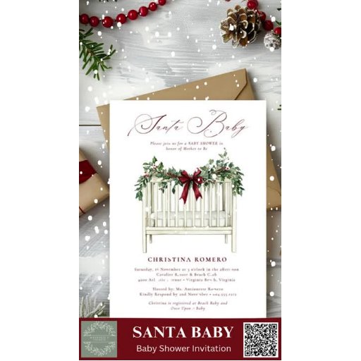Papais noeis Elegantes Modernos e Cutes Papéis para Chás de fraldas - Celebre a alegria de uma nova chegada com nossa coleção moderna de Chás de fraldas Elegantes de Cores Aquáticas! Este charmoso design apresenta um berço de bebê aconchegante, suavemente detalhado com um verde festivo de Natal, e destacado por um delicado e rico arco de burgundy. O verde se cascata graciosamente, acrescentando um novo toque natural à cena. A elegante e moderna tipografia da placa de papel flui lindamente, criando um ar de sofisticação refinada, perfeito para a estação. É uma sutil mistura de alegria e elegância eterno, fazer uma maneira memorável de celebrar com seus amigos e família.
