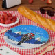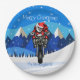 Prato De Papel Papais noeis sobre uma motocicleta no Natal das Mo
