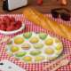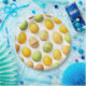 Pratos de Papel com Padrão de Ovos de Páscoa Amarelos e Verdes na Moda