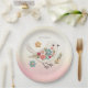 Prato De Papel Papel Floral de Pequeno Pássaro Branco